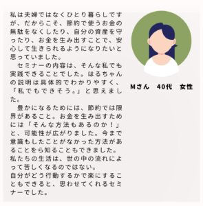 お金の不安は、すぐには解消できません。実際に多くの人たちは資産を作りたくても、資金に余裕がなく資産形成が進まない現状にあります。まずは数万円の余裕を作って資産を構築していく土台を整えていくことが重要です。 ※金融庁の資産運用に関するアンケート調査 特定商取引法の表記 | プライバシーポリシー